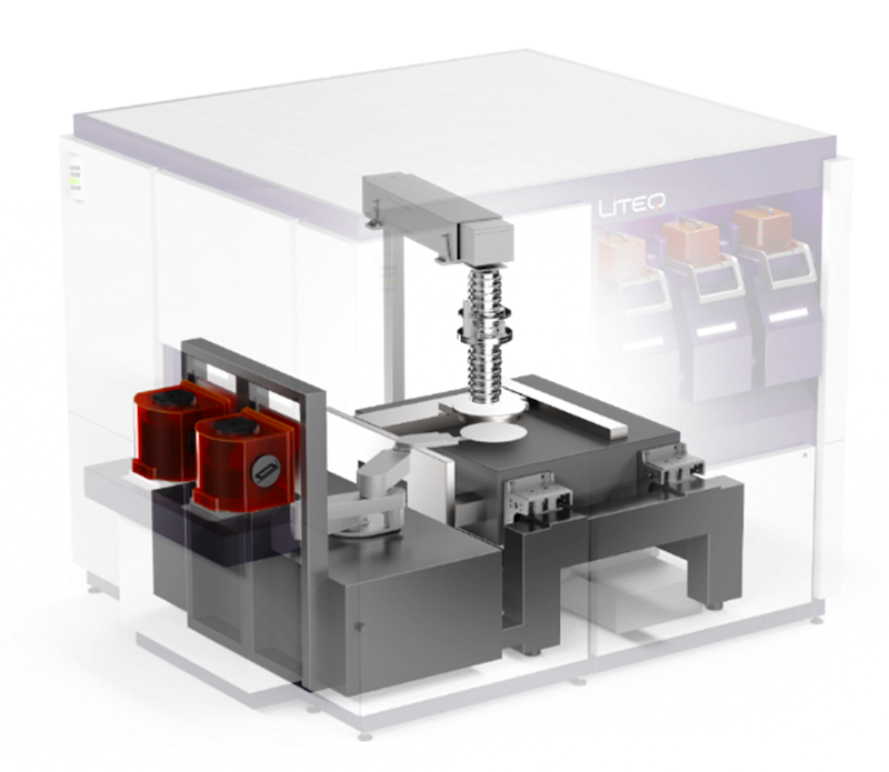 De Liteq 500 is een modern lithografie-stepper-systeem voor backend-toepassingen. Het bevat de modules die je van een dergelijk systeem mag verwachten – UV-laser, lens, motion stage en metrologie – en breidt dit uit met camera’s en geavanceerde patroonherkenning. Het hart van de machine is een projectielens. De lens verzorgt een goede projectie van de reticle-patronen naar de wafer om hier het UV-gevoelig materiaal, photoresist geheten, lokaal van eigenschappen te laten veranderen.