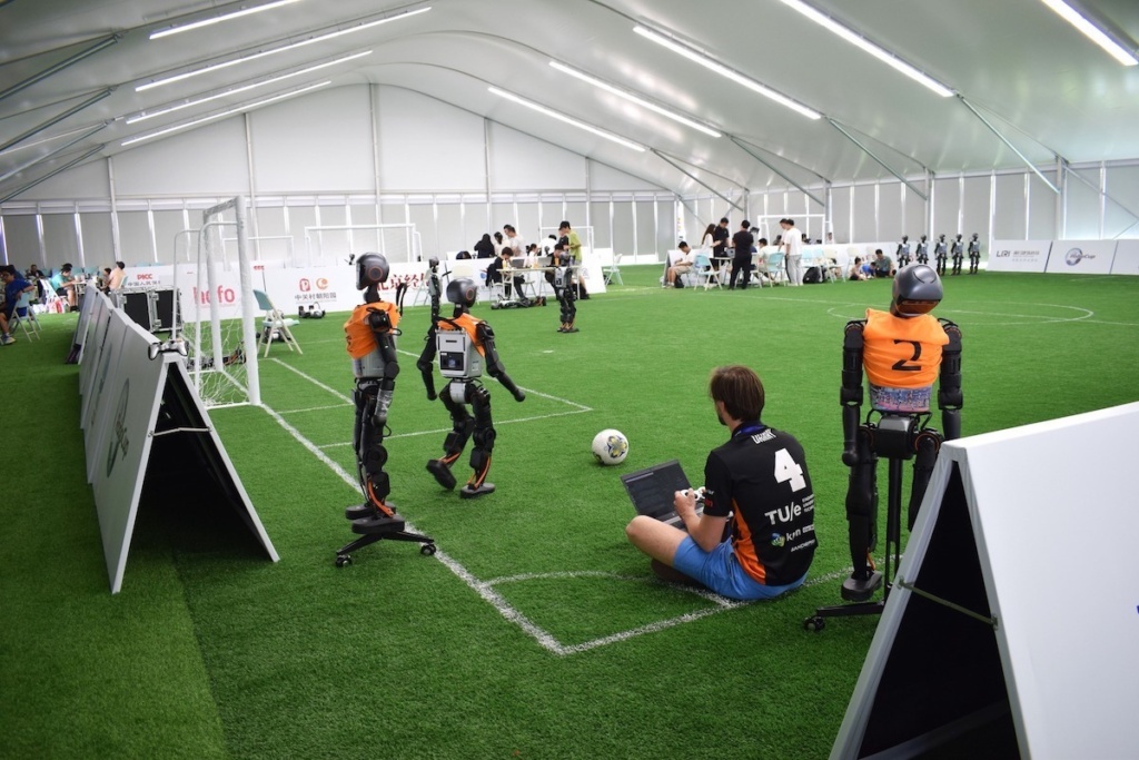 Humanoids vervangen rollende wereldkampioenen robotvoetbal van de TUE