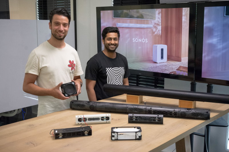 Eind vorig jaar introduceerde Sonos zijn nieuwe Arc Ultra-soundbar, die veertien luidsprekers bevat. Deze ene soundbar produceert de volledige Dolby Atmos-ervaring. Om de luidsprekers klein genoeg te maken om in de soundbar te passen en tegelijkertijd de hoge geluidskwaliteit te behouden, kreeg Sonos ondersteuning van het ervaren engineeringteam van Mayht, in 2022 overgenomen door Sonos, om de technologie te verkleinen.