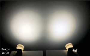De combinatie van een COB met een lens geeft vaak een Saturnusring, een ongewenste verkleuring aan de onderkant of buitenkant van het lichtbeeld. Dit probleem manifesteert vooral naarmate de openingshoek kleiner wordt. Citizen heeft hiervoor de Falcon COB ontwikkeld die qua chromaticiteit een vlakke richtingsgevoeligheid heeft en daarmee het euvel wegneemt.