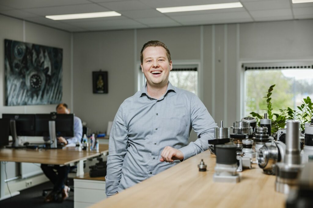 Alle deelnemende bedrijven krijgen dezelfde vier vierkante meter tot hun beschikking. Je moet dus creatief zijn. Je kunt er een banner en een tafeltje neerzetten, maar dan loop je het risico dat mensen je overslaan. Je moet iets laten zien, iets beleven. Daar worden bedrijven uitgedaagd om wat bijzonders te doen – iets dat blijft hangen. Want als iemand straks op zijn werk een tandwielkast nodig heeft, dan moet hij denken: hé, die zag ik toen op het festival.”