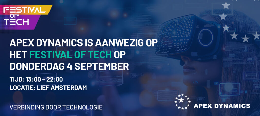 Op 4 september 2025 strijkt het Festival of Tech neer op de sfeervolle locatie LIEF Amsterdam. Er is plaats voor 1.000 bezoekers en 40 bedrijven om deel te nemen – waarvan inmiddels al een aantal plekken zijn ingevuld. Deelnemende bedrijven krijgen vier vierkante meter tot hun beschikking om zich op een opvallende en originele manier te presenteren. Apex Dynamics is er in elk geval bij en kijk ernaar uit om zich daar met enthousiasme te laten zien.