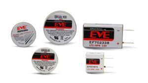 EVE Energy biedt met niet-oplaadbare lithium thionyl chloride 3,6V batterijen veel energie en extreem lage zelf-ontlading waardoor een batterijwisseling gedurende de levensduur van het apparaat niet hoeft te gebeuren. In dat geval kan de designer ervoor kiezen de primaire lithium cel direct op de print te solderen in plaats van in een verwisselbare houder te plaatsen.